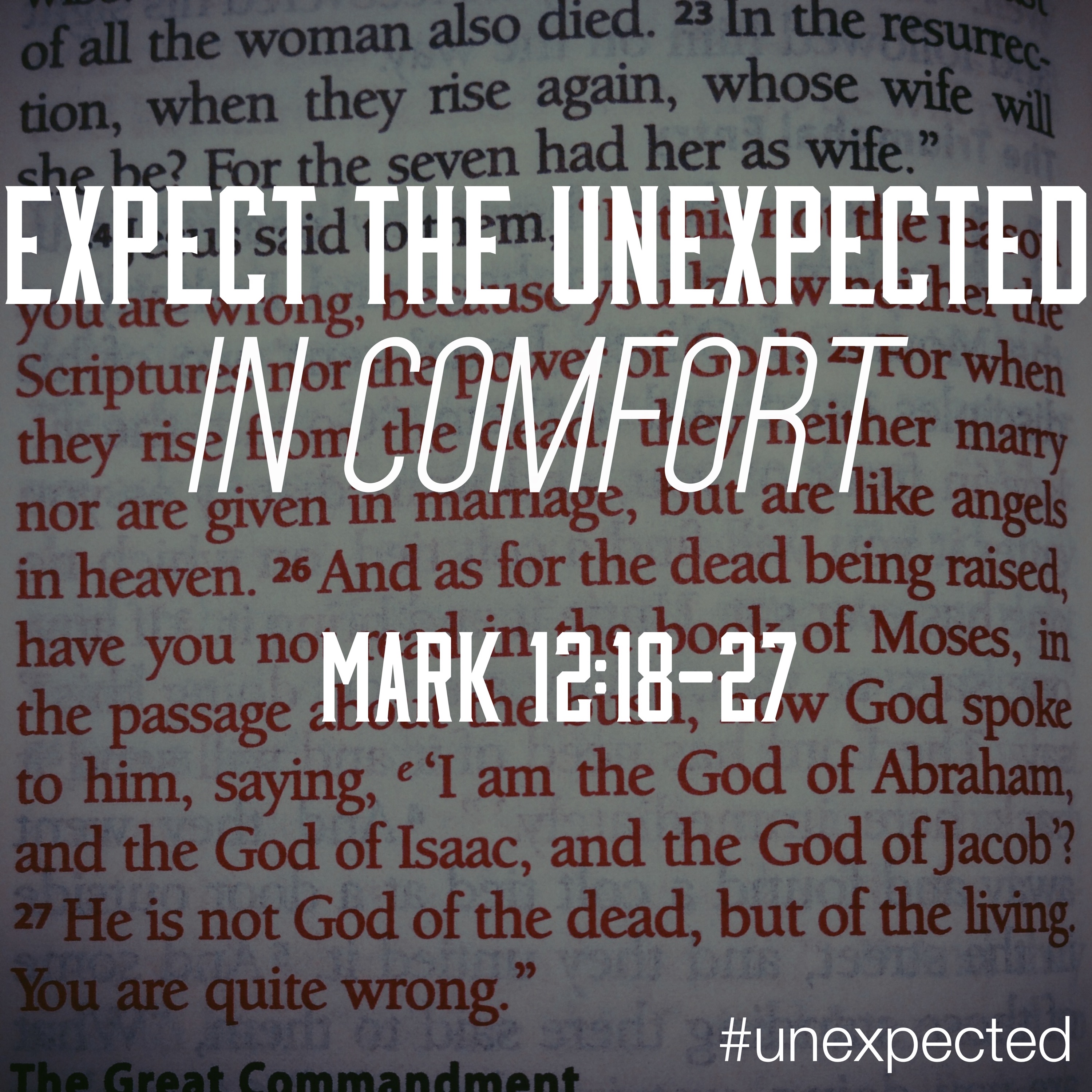 Expect the Unexpected in Comfort (Mark 12:18-27) Our Easter sermon series continues this morning. Join us at 10 am! Published via Pressgram By Staff|2014-04-13T07:38:04-04:00April 13th, 2014|Categories: Photos|Tags: Sermon|Comments Off on Expect the Unexpected in Comfort (Mark 12:18-27) Read More